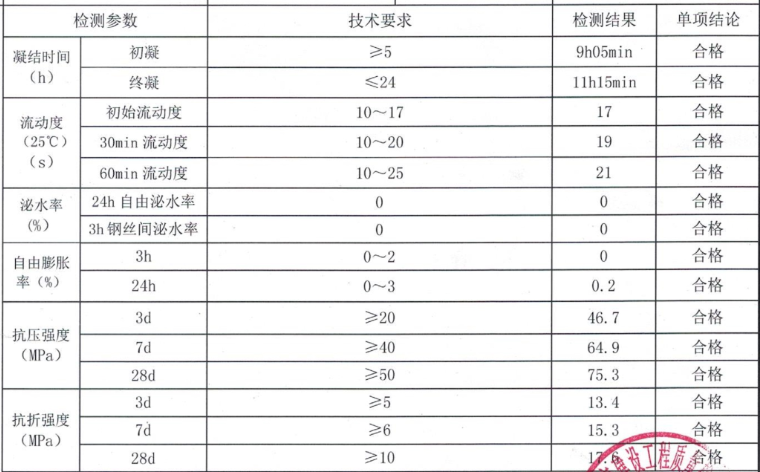 用于后張梁預(yù)應(yīng)力管道充填的壓漿材料、防止預(yù)應(yīng)力鋼材的防腐、保證預(yù)應(yīng)力束與混凝土結(jié)構(gòu)之間有效的應(yīng)力傳遞,使孔道內(nèi)漿體飽滿密實(shí),漿體保持一定的PH值范圍,完全包裹預(yù)應(yīng)力鋼材,漿體硬化后有較高的強(qiáng)度和彈性模量及膨脹無收縮性和粘接力。